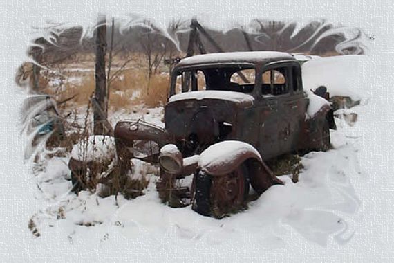 DASHING THROUGH THE SNOW IN MY RUSTY CHEVROLET DOWN THE ROAD I GO SLIDING ALL THE WAY I NEED NEW PISTON RINGS I NEED SOME NEW SNOW TIRES MY CAR IS HELD TOGETHER BY A PIECE OF CHICKEN WIRE